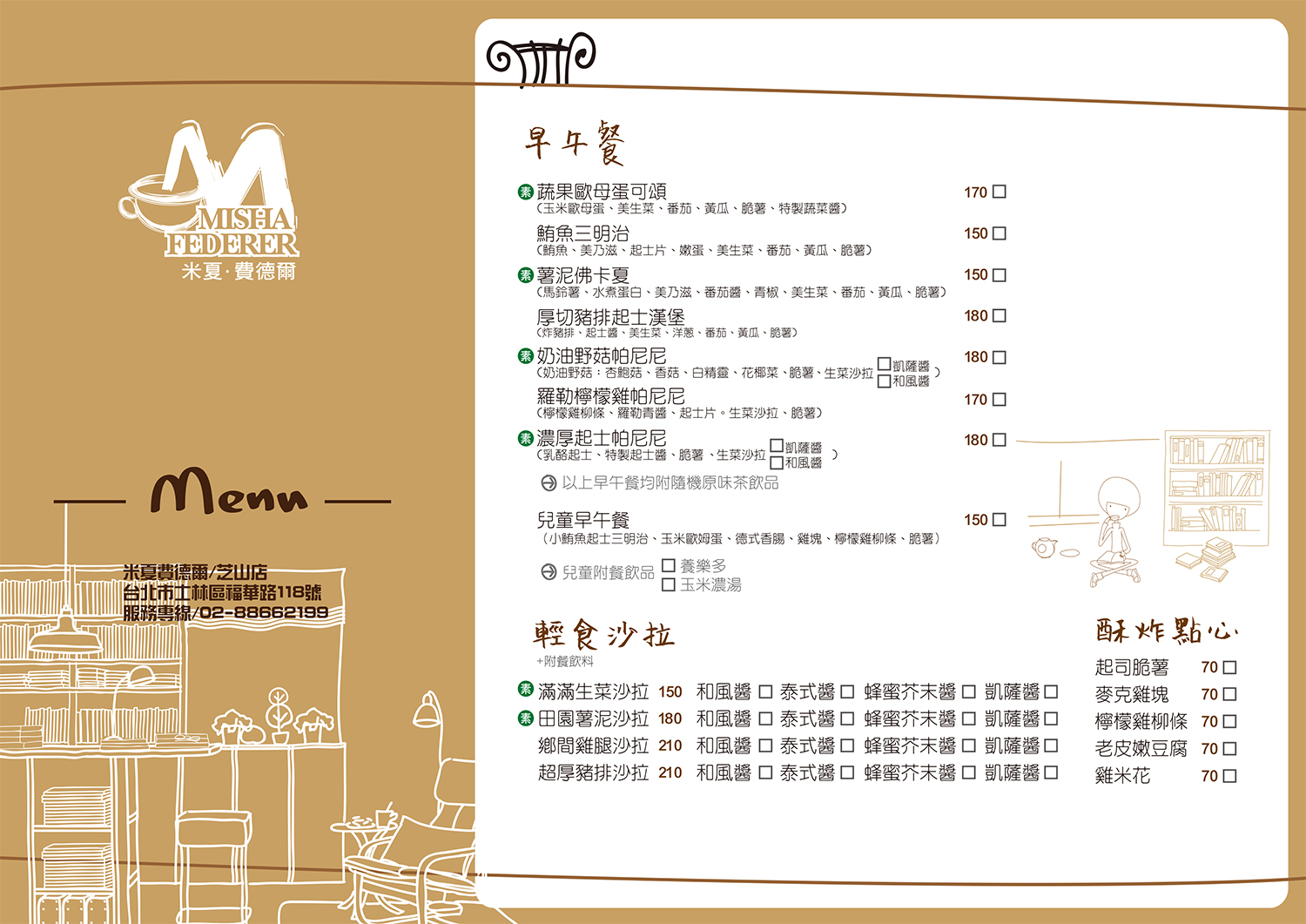 台北市士林區福華路 118 號的米夏.費德爾,鄰近捷運芝山站,專營美味的歐風料理,此外還提供輕食,超人氣的超厚豬排沙拉、韓式泡菜雞腿佛卡夏等樣樣經典,道道推薦。